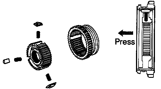 b. Remove the 3 shifting keys and springs from the No. 1 clutch hub.