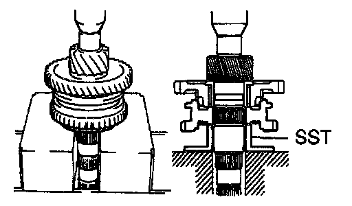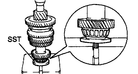 Using SST and a press, install the 1st gear bearing inner race.