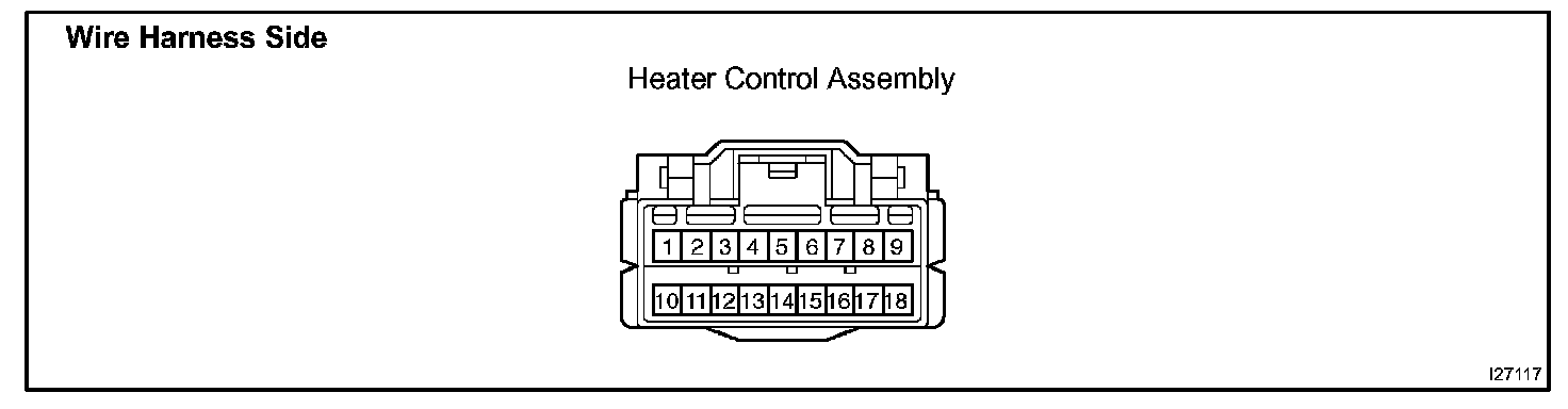 Disconnect the connector from the heater control assembly, and check the connector on the wire harness side.