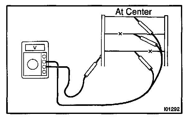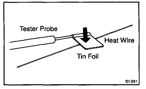 HINT: If the heat wire is not broken, the voltmeter indicates 0 V at the positive (+) end of the heat wire but gradually increases to about 12 V as the meter probe is moved to the other end.