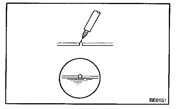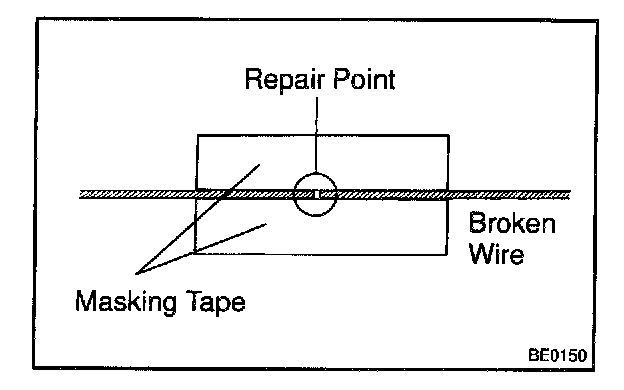 (b) Place the masking tape along both sides of the wire to be repaired.
