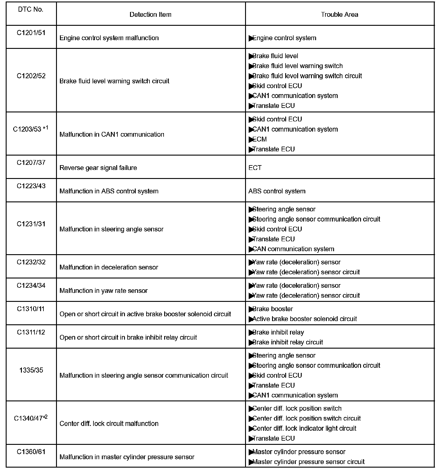 *1: Check DTC chart C1203/53 first, then troubleshoot according to the DTC chart of translate ECU if necessary.