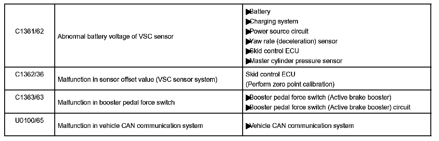 DTC chart of VSC system: