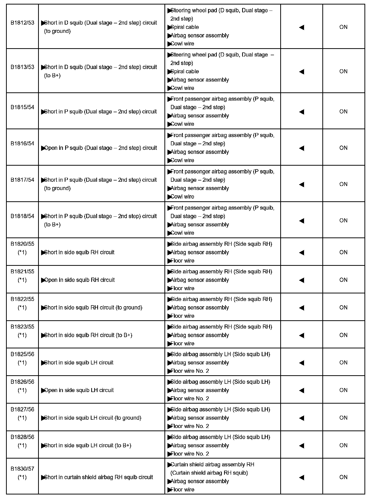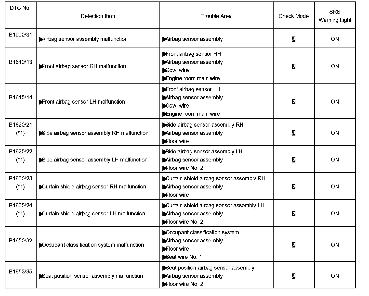 DIAGNOSTIC TROUBLE CODE CHART1. DTCS FOR SUPPLEMENTAL RESTRAINT SYSTEM