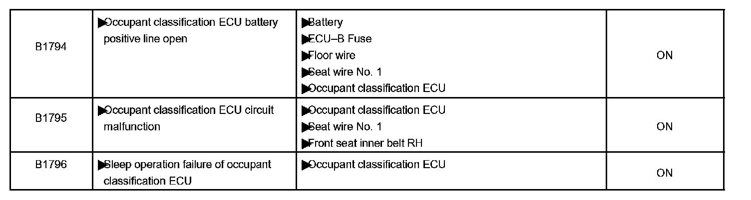 - When the DTC B1650/32 is detected as a result of troubleshooting for the Supplemental Restraint System, perform troubleshooting for the occupant classification system as shown in the chart.