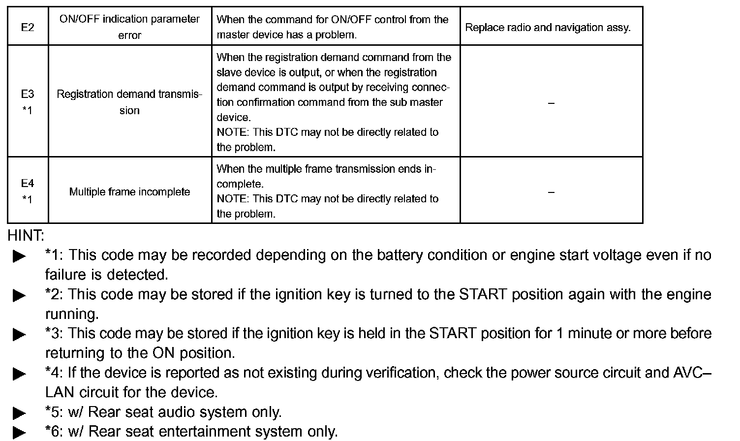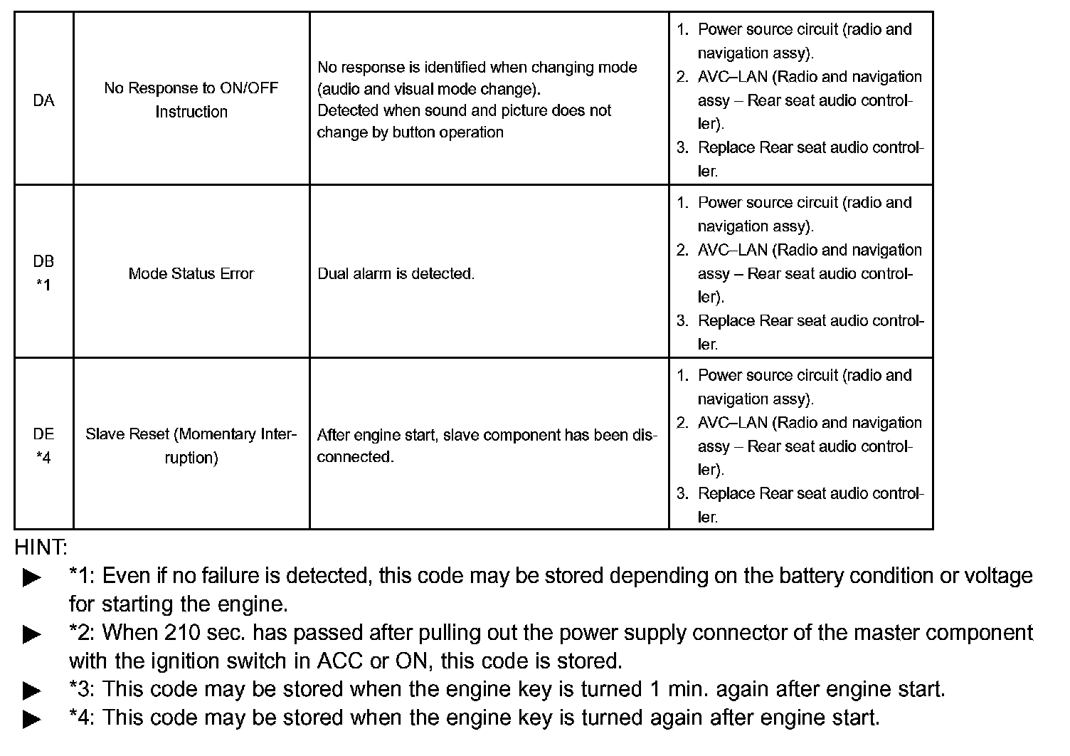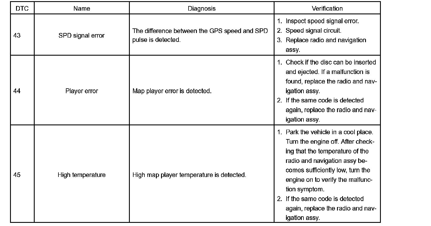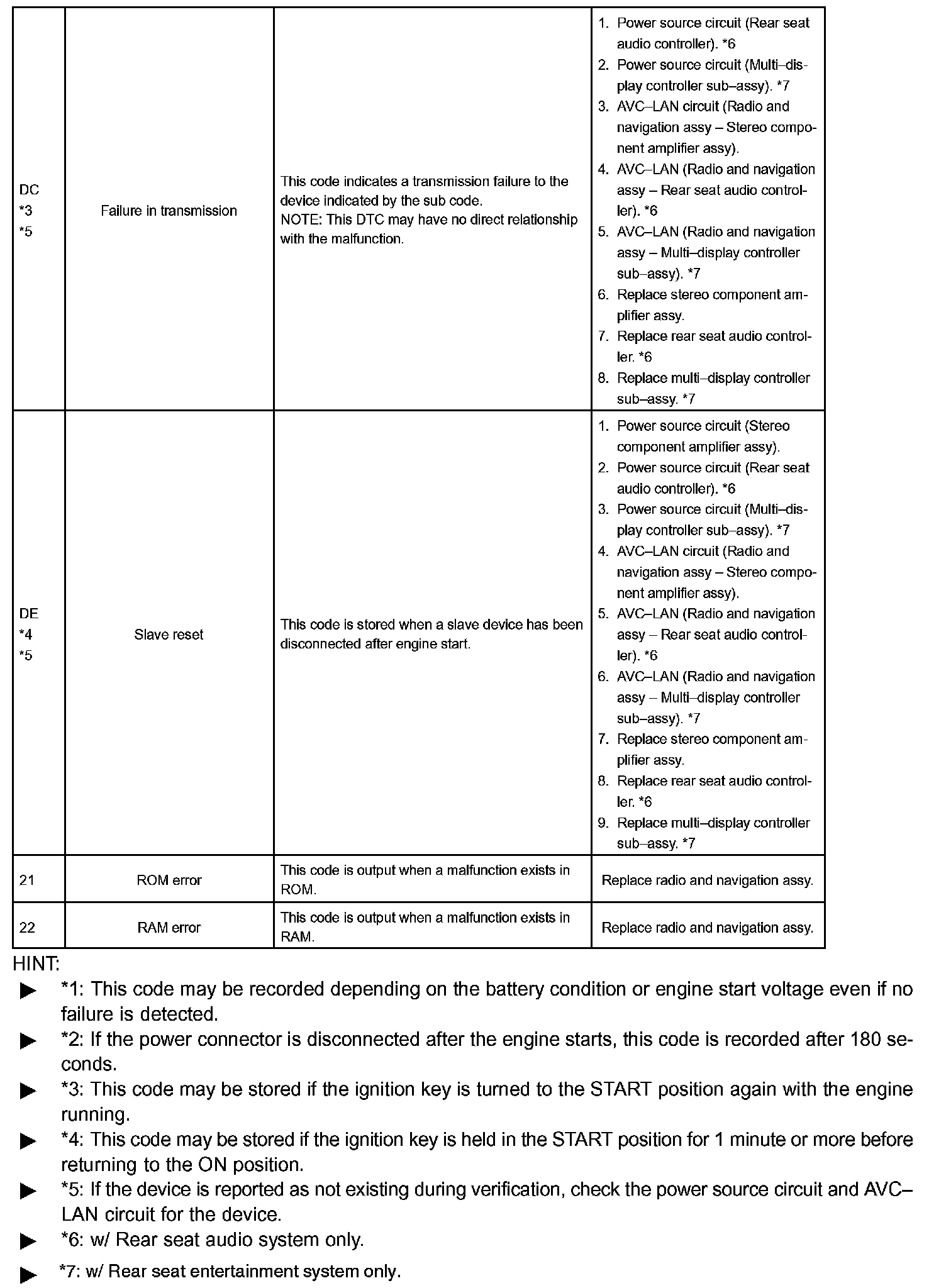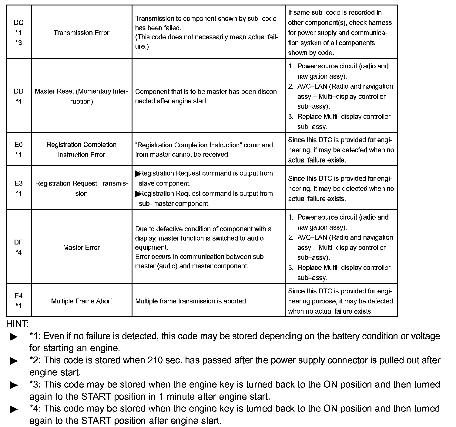 DIAGNOSTIC TROUBLE CODE CHARTHINT: Titles for each unit are stated in the following order: parts name (physical address) [Name indicated by DTC]