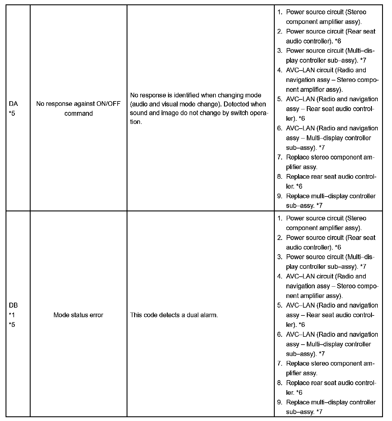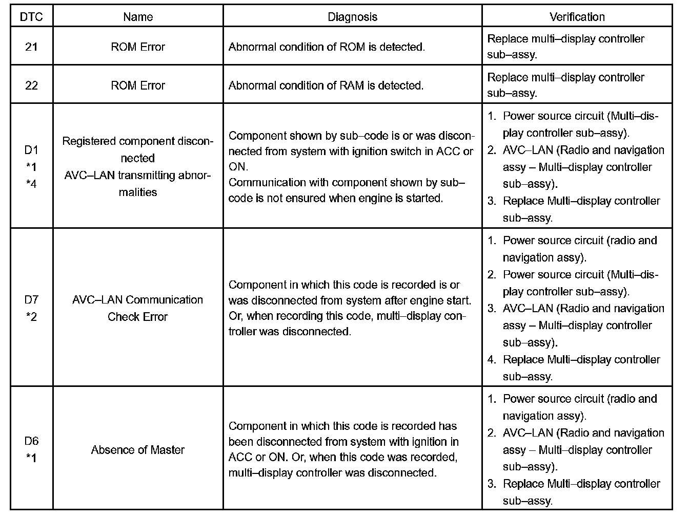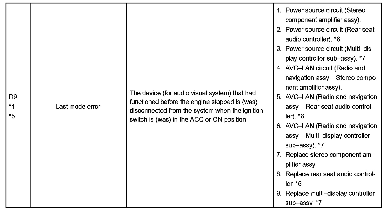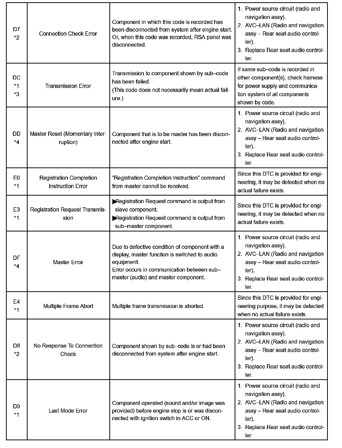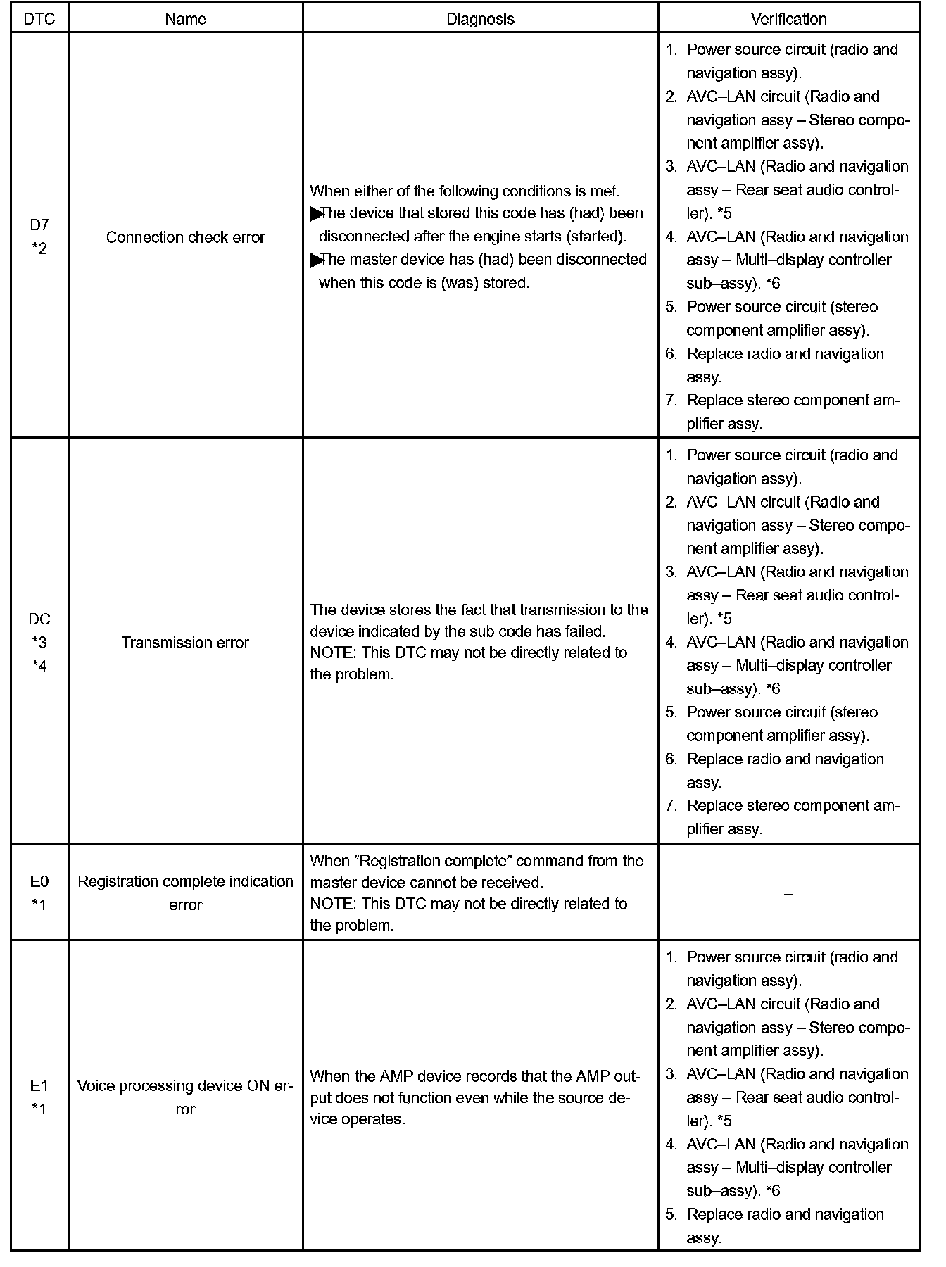 DIAGNOSTIC TROUBLE CODE CHARTHINT: Titles for each unit are stated in the following order: parts name (physical address) [Name indicated by DTC]