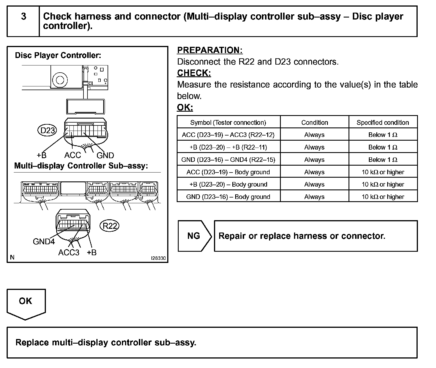 This circuit provides power to the disc player controller. The power is sent from the battery to the disc player controller through the multi-display controller sub-assy.