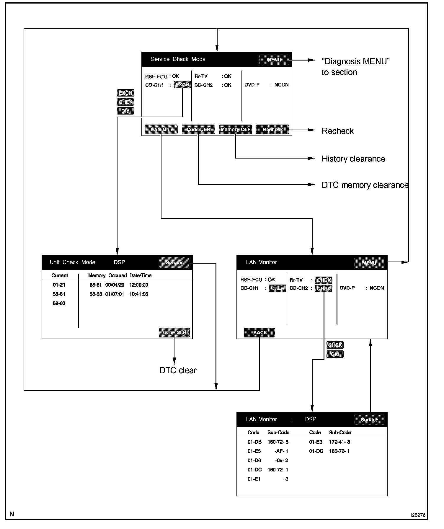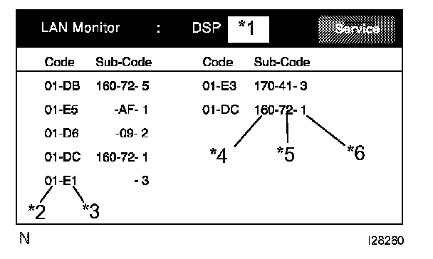 - The LAN Monitor chooses and displays the LAN DTC out of DTC of components identified as "CHEK" in the LAN Monitor.