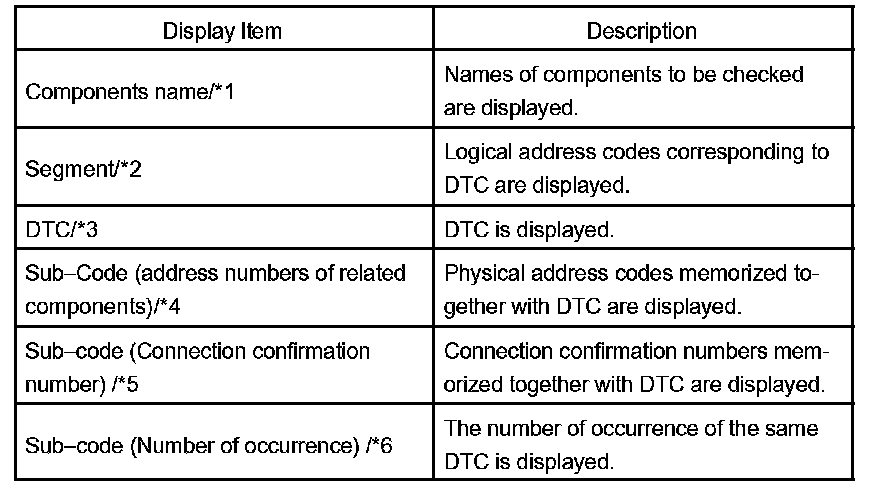 - In the Unit Check Mode, DTC which is identified as "EHCK" in the Service Check is displayed as classified into Current DTC and Past DTC.