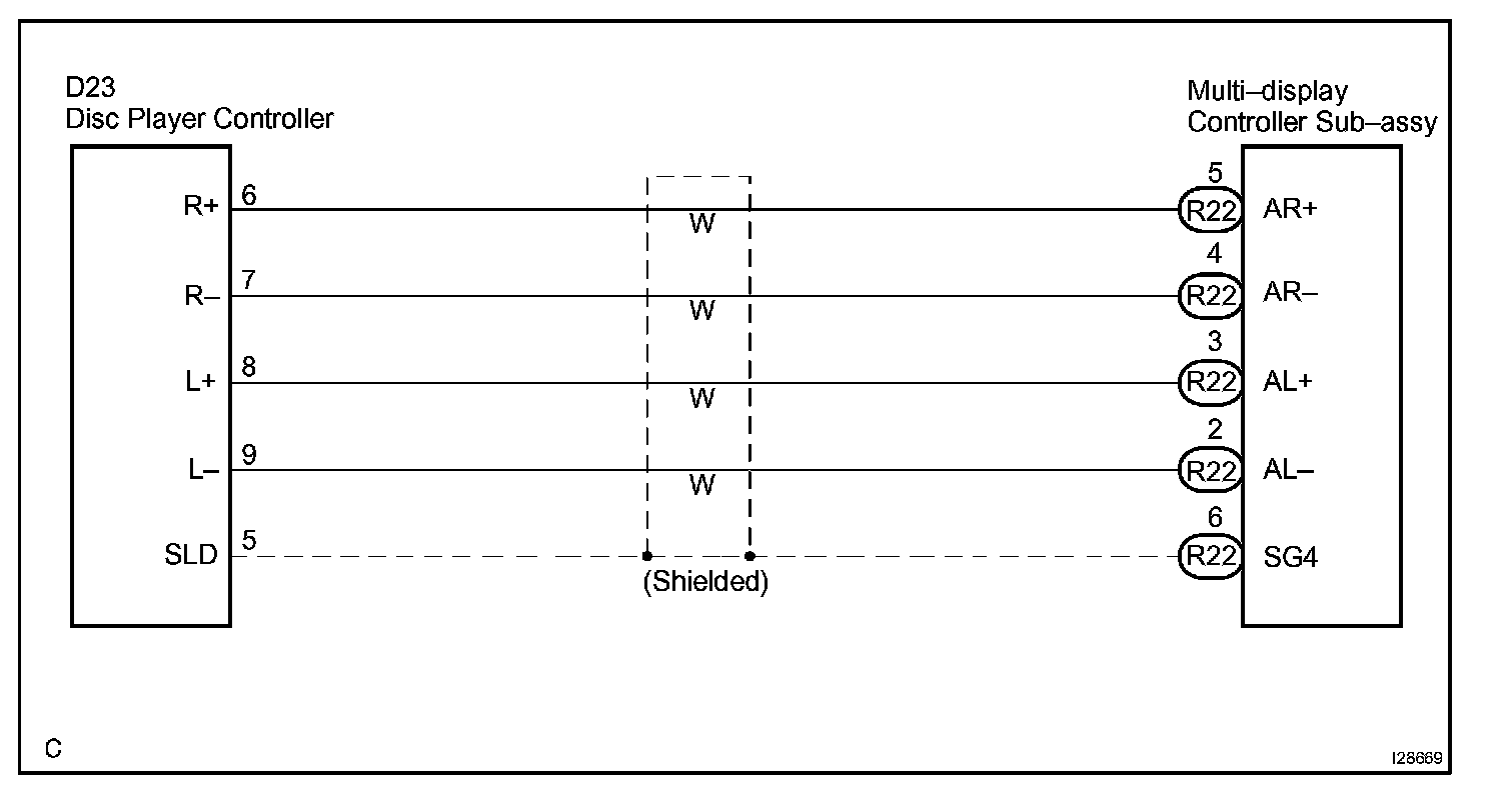 This is the sound signal circuit from the disc player controller to the multi-display controller sub-assy.