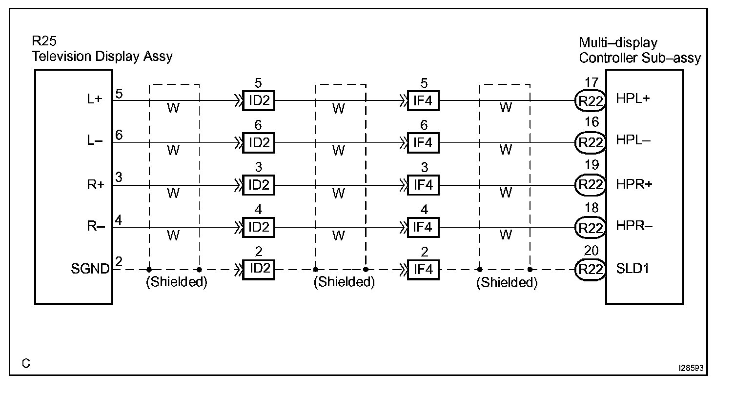 This is the sound signal circuit from the television display assy to the multi-display controller sub-assy.