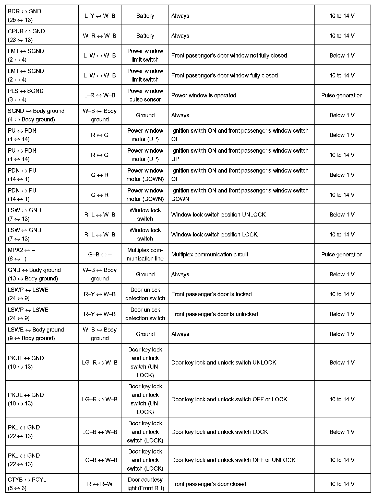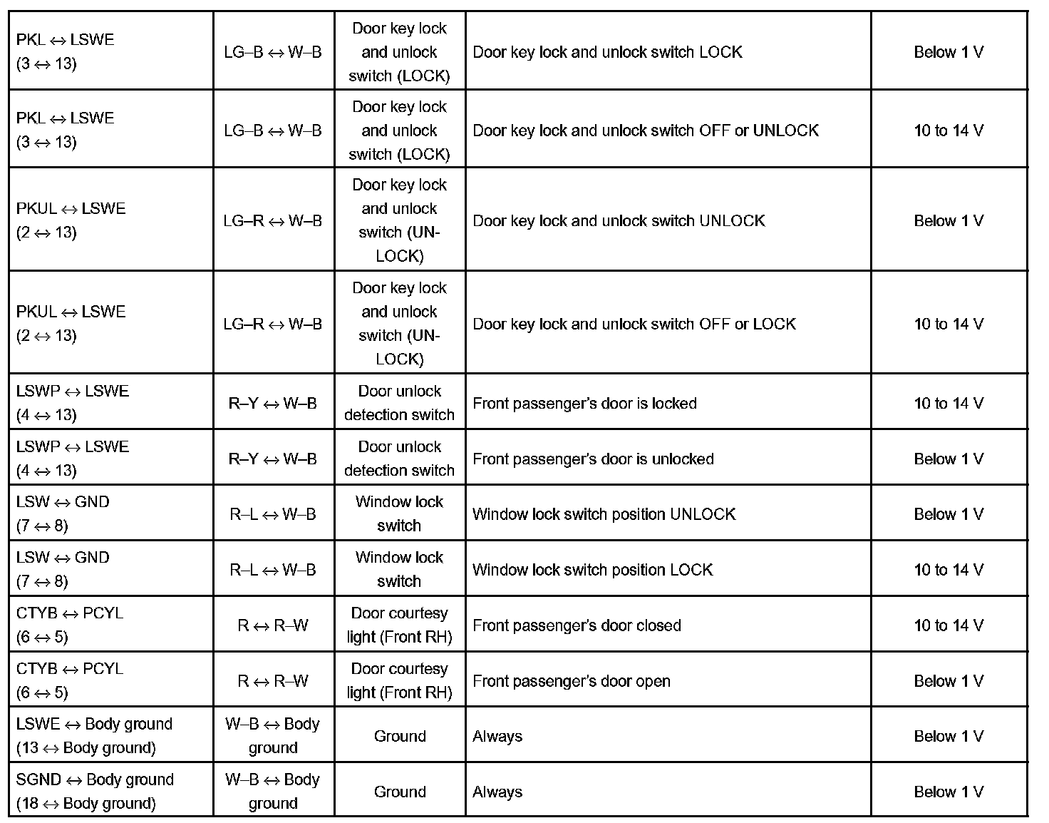 Pinout Values and Diagnostic Parameters