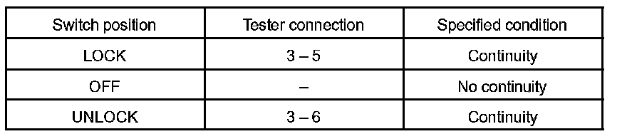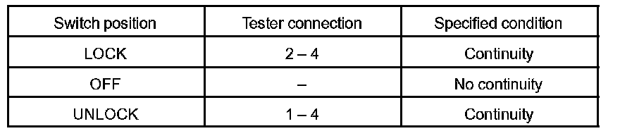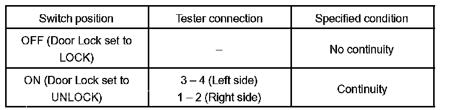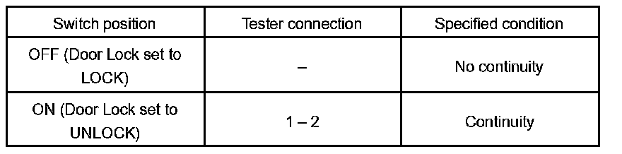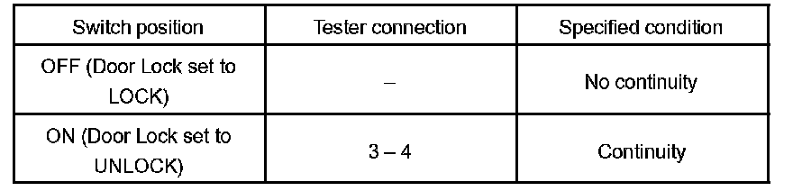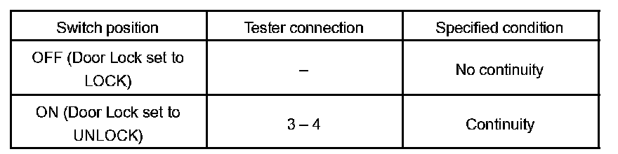 INSPECT DRIVER DOOR KEY LOCK AND UNLOCK SWITCH CONTINUITY
