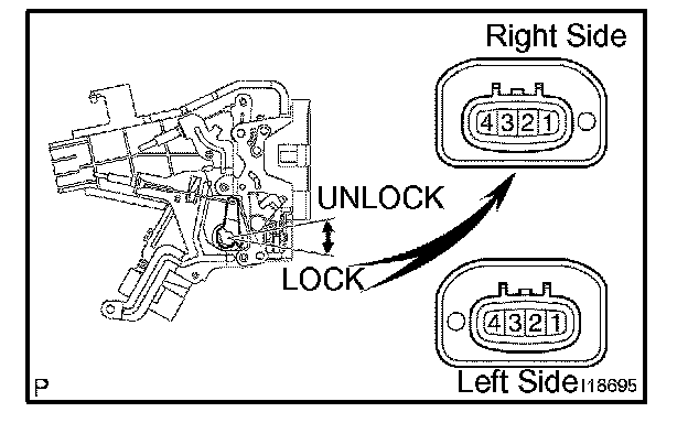 INSPECT PASSENGERS DOOR KEY LOCK AND UNLOCK SWITCH CONTINUITY