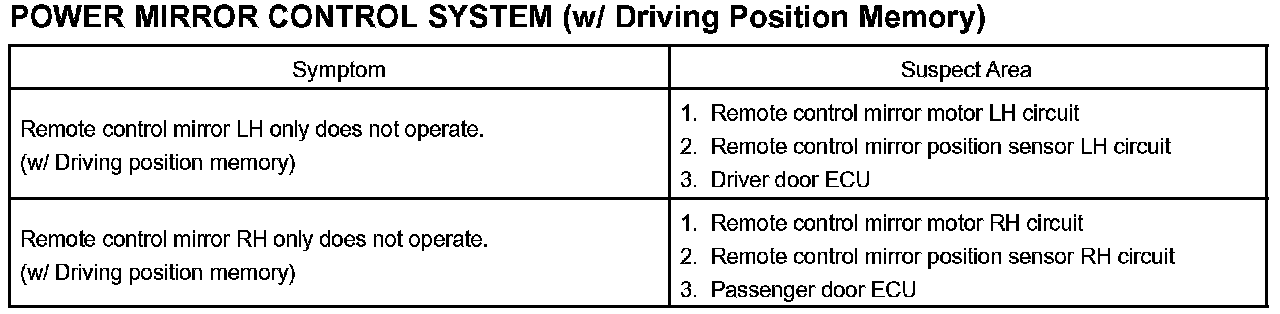Problem Symptoms Table - Power Mirror Control System (w/ Driving Position Memory):