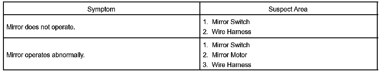 POWER MIRROR CONTROL SYSTEMProblem Symptoms Table - Power Mirror Control System(w/o Driving Position Memory):