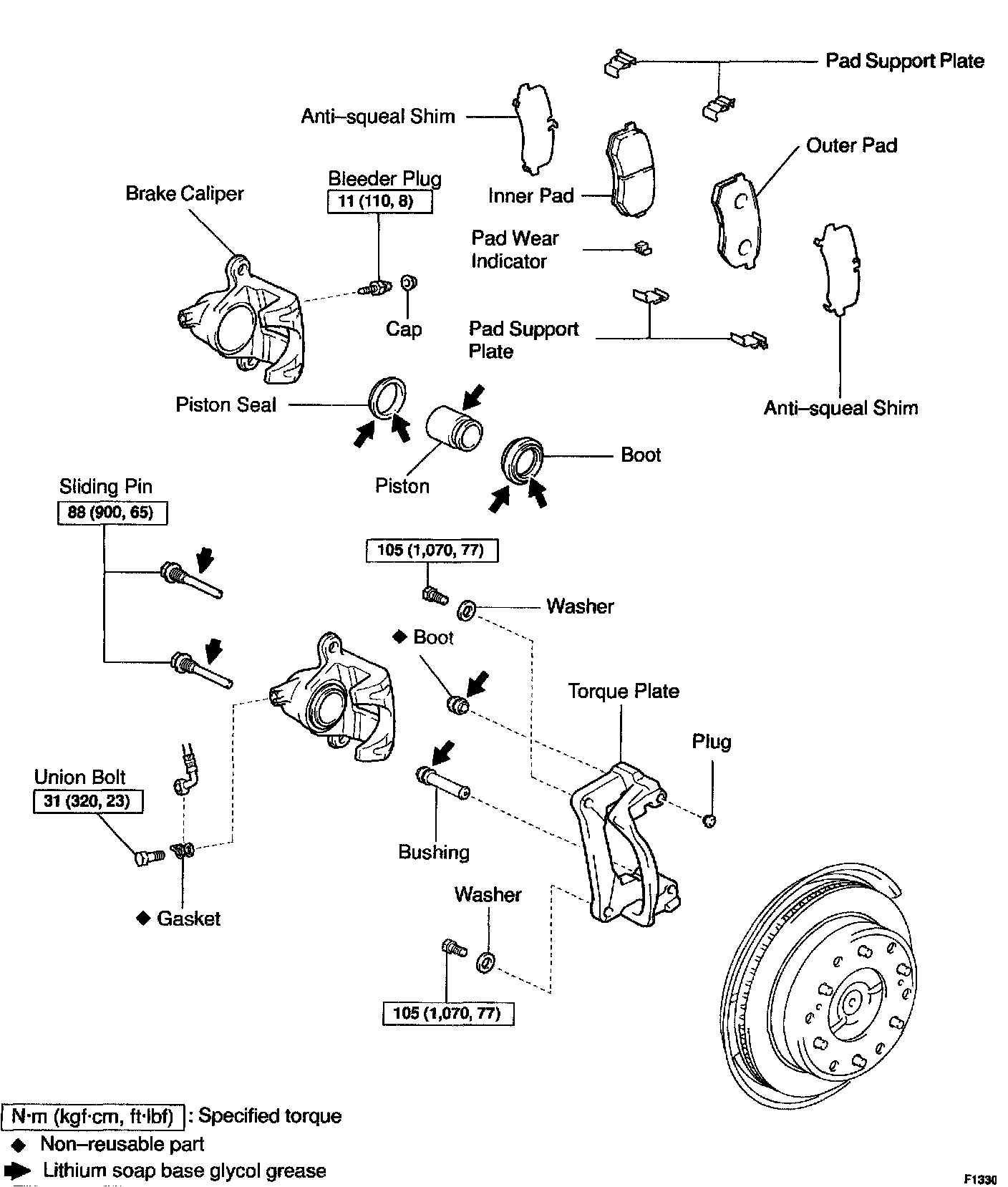 HINT: Apply lithium soap base glycol grease to the parts indicated by the arrows.