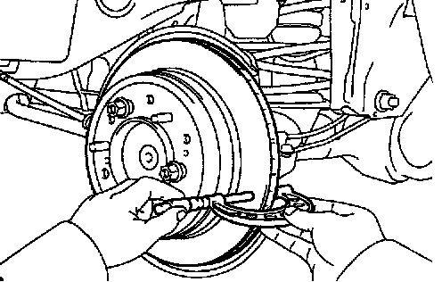 If the disc's runout is at the maximum value or greater, check the bearing play is in the axial direction and check the axle hub runout. If the bearing play and axle hub runout are not abnormal, adjust the disc runout or grind it on an "On Car" brake lathe.