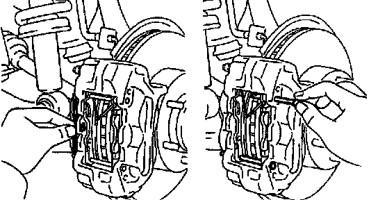 ^ If the piston is difficult to push in, loosen the bleeder plug and push in the piston while letting some brake fluid escape.