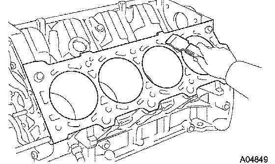 a. Using a gasket scraper, remove all the gasket material from the top surface of the cylinder block.