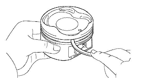 b. Inspect the piston ring groove clearance. Using a feeler gauge, measure the clearance between the new piston ring and the wall of the ring groove.