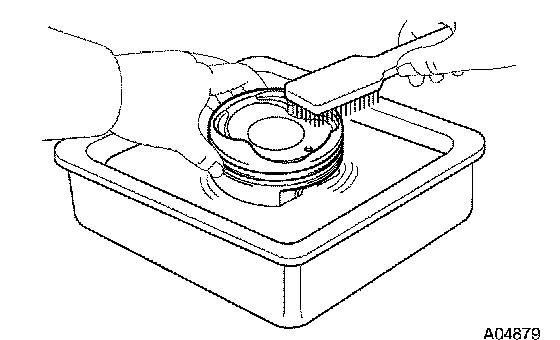 c. Using solvent and a brush, thoroughly clean the piston.