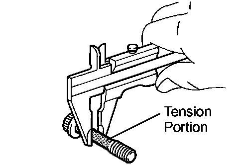 g. Using vernier calipers, measure the tension portion of the connecting rod bolt.
