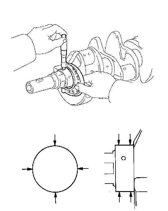 2. Check each main journal and crank pin for taper and out-of-round as shown.