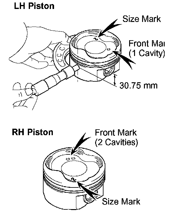 HINT: The shape of the piston differs for the LH and RH banks. The LH piston is marked with 1 cavity and "2", the RH piston with 2 cavities and "2".