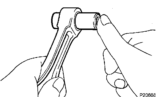 e. Check the piston pin fit at normal room temperature. Coat the piston pin with engine oil, and push it into the connecting rod with your thumb.