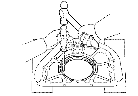 1. Using a screwdriver and hammer, tap out the oil seal.