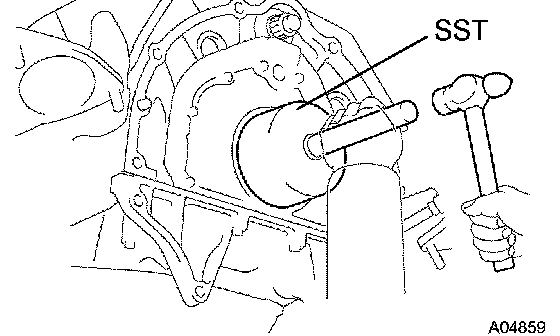 2. Using SST and a hammer, tap in a new oil seal until its surface is flush with the rear oil seal retainer edge.