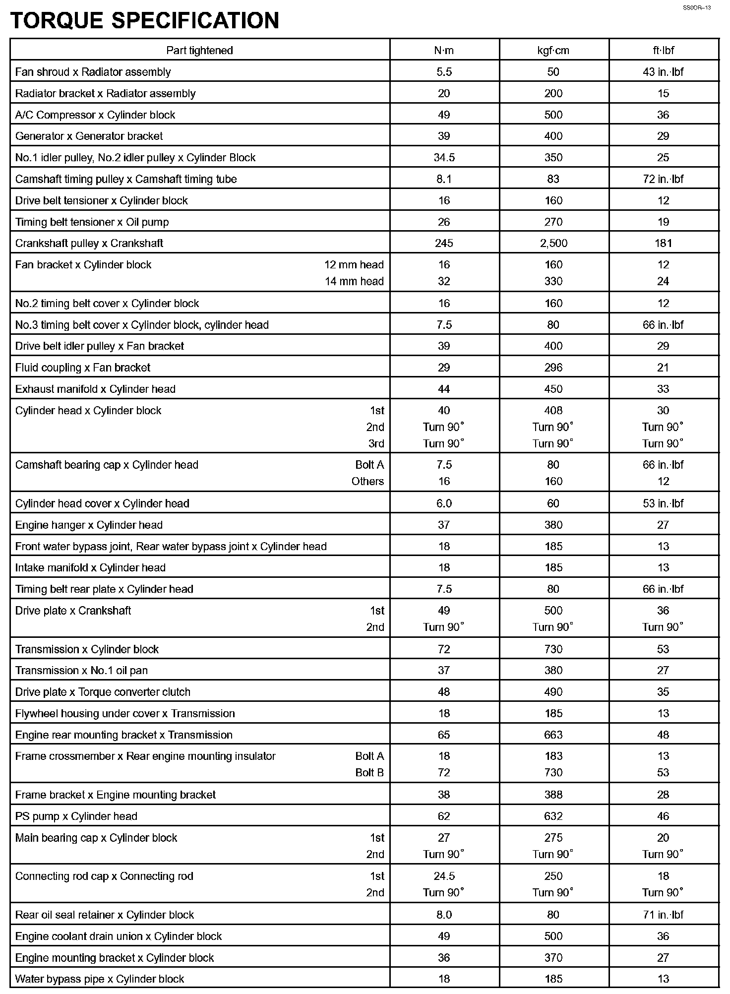 Engine Mechanical - Torque Specification Part 1: