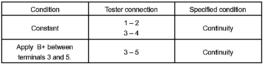 If continuity is not as specified, replace the relay.