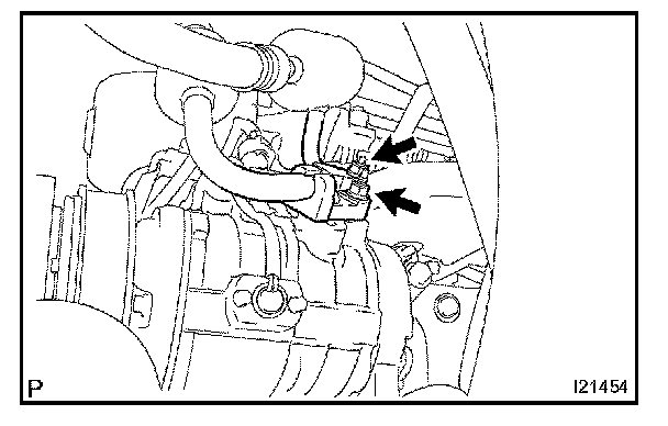 Remove the 2 nuts and disconnect both hoses.