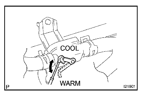 b. Operate temperature control switches to "MAX. COOL" and "MAX. WARM", then check water valve operation, as shown in the illustration.