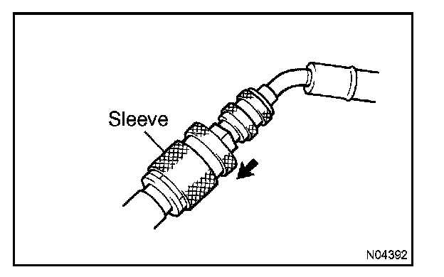 HINT: Push the quick disconnect adapter onto the service valve, then slide. Slide the sleeve of the quick disconnect adapter downward to lock it.