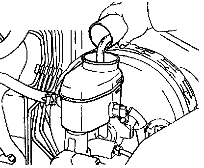Check the fluid level in the reservoir after bleeding each wheel. Add fluid, if necessary.