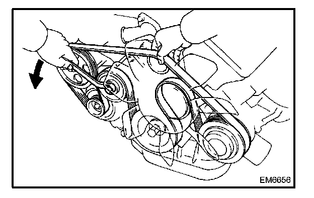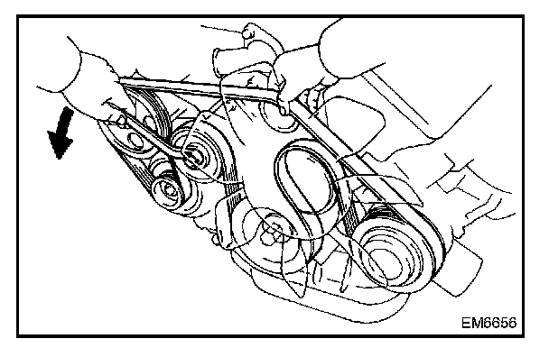 Loosen the drive belt tension by turning the drive belt tensioner counter clockwise,and remove the drive belt.
