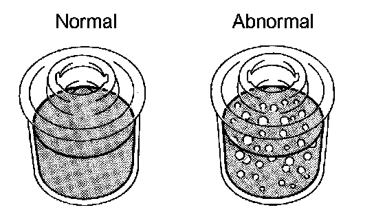 e. Check for foaming or emulsification. If there is foaming or emulsification, bleed the air from the power steering system.