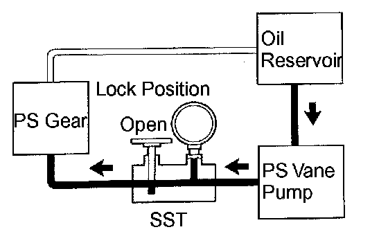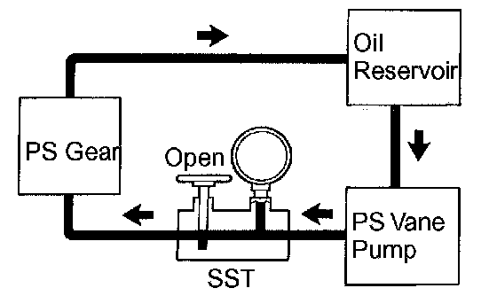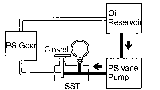 g. With the engine idling, close the valve of the SST and observe the reading on the SST.