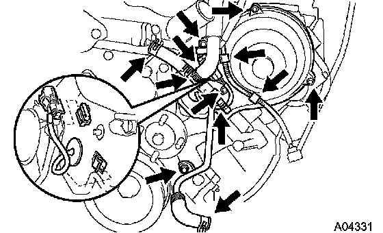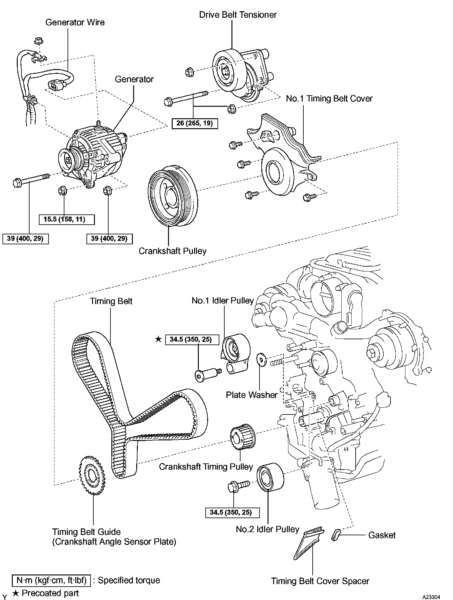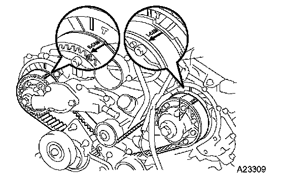 HINT: If the installation marks have disappeared, place a new installation mark on the timing belt before removing each part.
