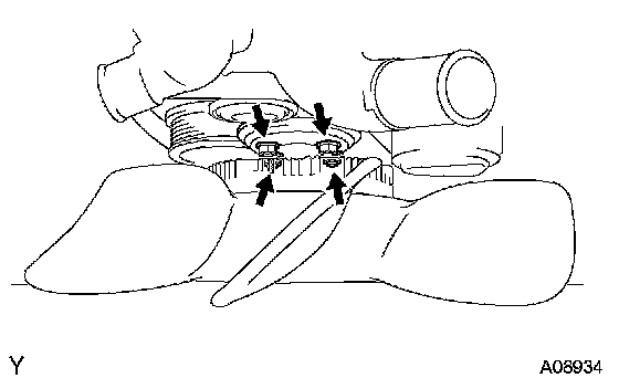 a. Temporarily install the fan pulley, the fan, fluid coupling assembly with the 4 nuts.