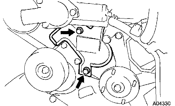 Alternately loosen the 2 bolts, and remove them, the belt tensioner and dust boot.