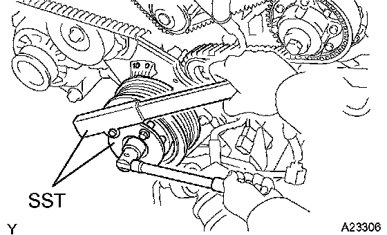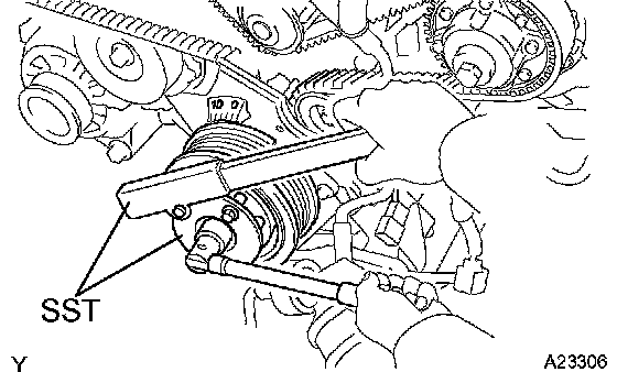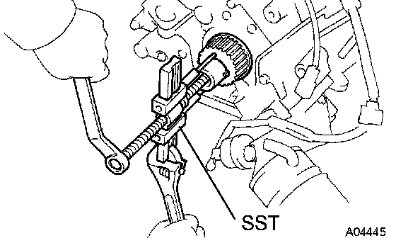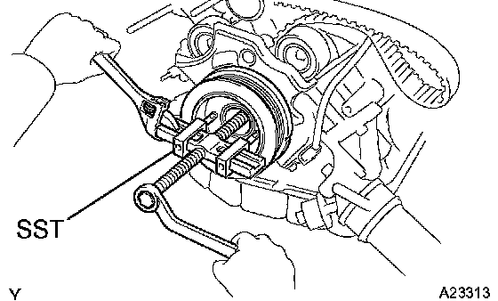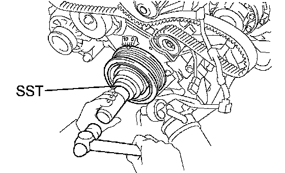 22. REMOVE CRANKSHAFT PULLEY Using SST, remove the crankshaft pulley.
