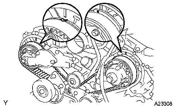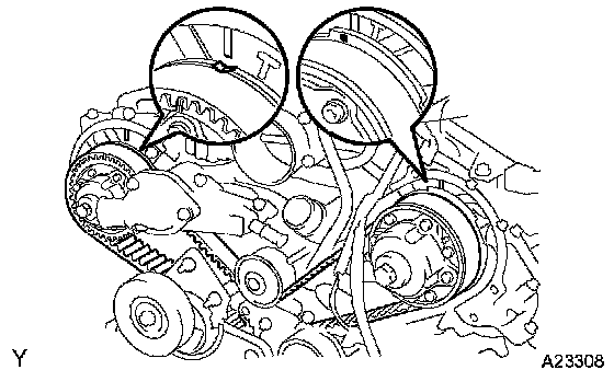 c. Check that each pulley aligns with the timing marks as shown in the illustration.