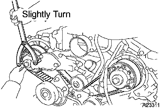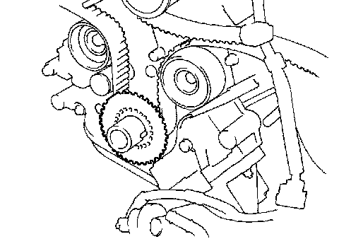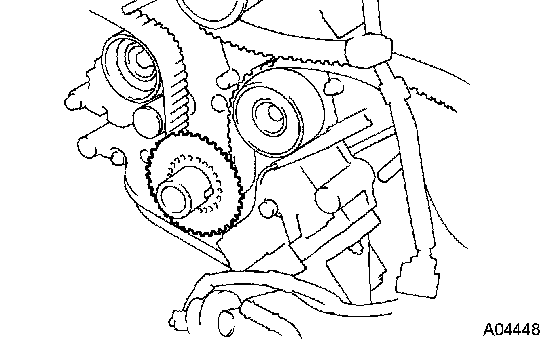 b. Disconnect the timing belt from the camshaft timing pulleys.