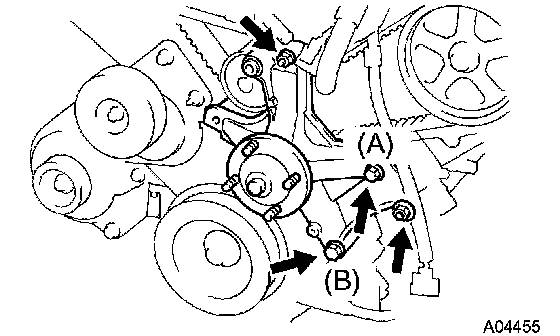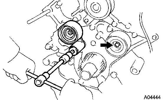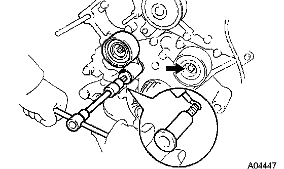 ^ Do not utilize timing belt tension when installing or removing the mount bolt of the camshaft timing pulley.