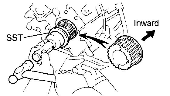 b. Using SST and a hammer, tap in the crankshaft pulley.